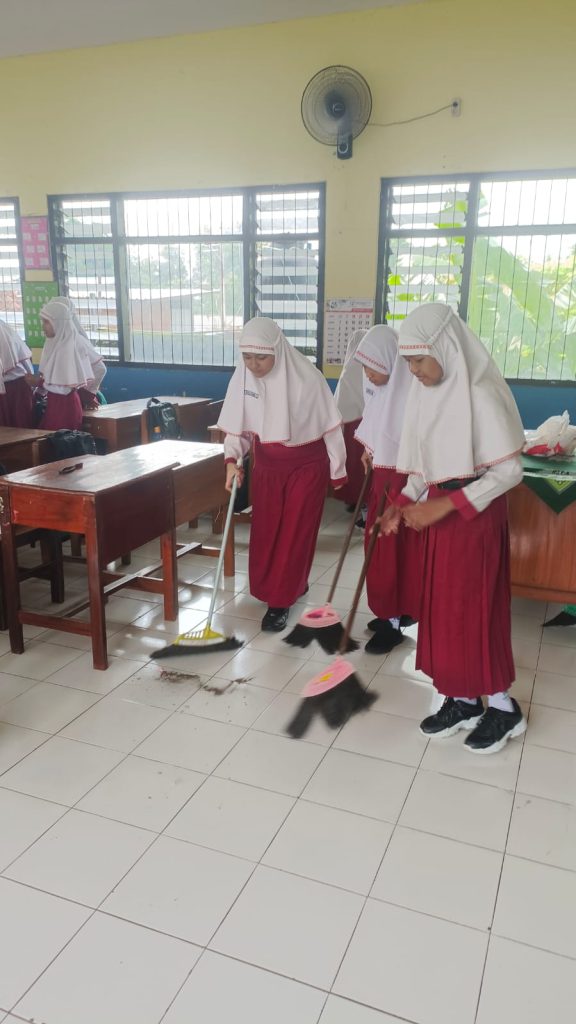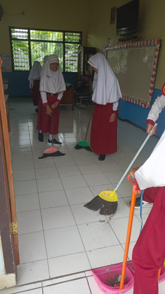 Usai apel pagi, kegiatan dilanjutkan dengan bersih-bersih kelas. Siswa bersama wali kelas membersihkan ruang kelas dan lingkungan sekolah sebagai bentuk kepedulian terhadap kebersihan dan kenyamanan belajar. Kegiatan ini juga bertujuan menanamkan nilai tanggung jawab, kerja sama, dan cinta terhadap lingkungan sekolah.