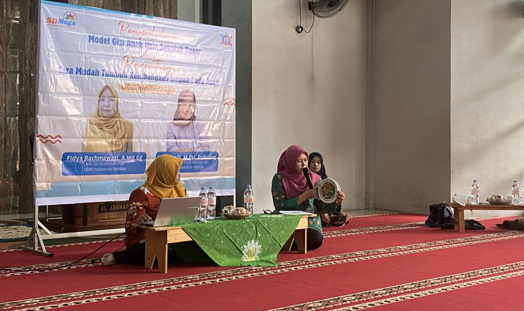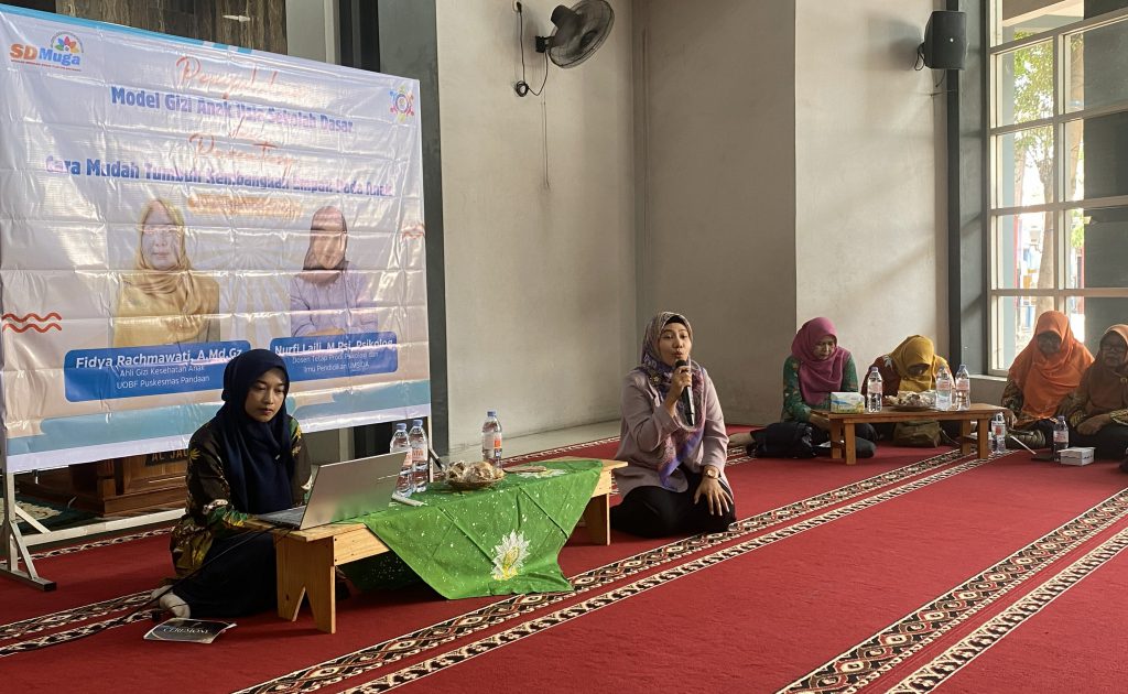 Kegiatan diawali dengan Penyuluhan Kesehatan bertema “Model Gizi Anak Usia Sekolah Dasar” yang disampaikan oleh Ibu Fidya Rachmawati, A.Md.Gz, selaku Ahli Gizi Kesehatan Anak UOBF Puskesmas Pandaan. Dalam pemaparannya, beliau menjelaskan pentingnya pemenuhan gizi seimbang bagi anak usia sekolah guna menunjang pertumbuhan fisik, perkembangan otak, serta daya konsentrasi belajar anak. Para orang tua juga diberikan panduan praktis dalam menyiapkan menu sehat dan bergizi di lingkungan keluarga.